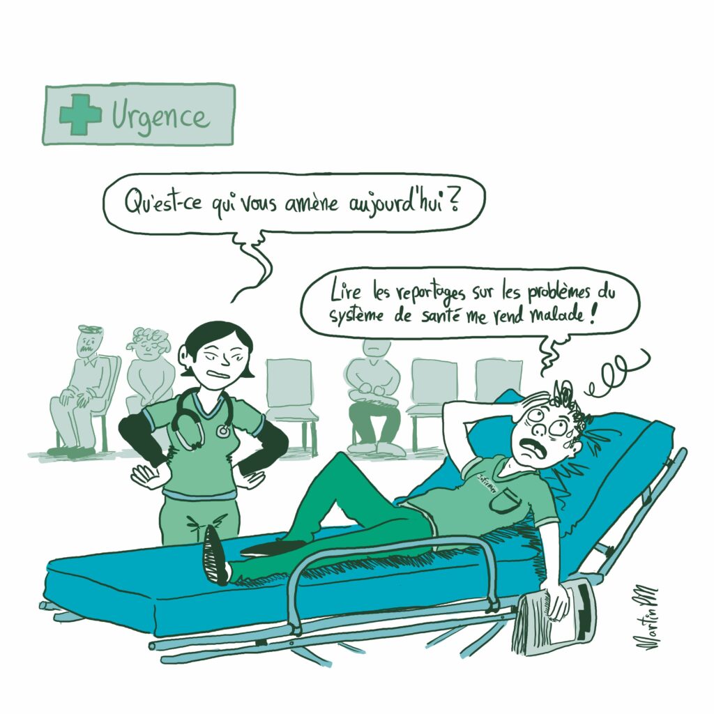 La santé occupe l’espace médiatique en permanence. C’est un secteur en «crise» perpétuelle. Les attentes aux urgences (j’ai vu des manchettes remontant aux années 1990 sur le sujet), le vieillissement source d’engorgement du système, les ratés en santé mentale, qui est le parent pauvre du système avec les soins à domicile, la crise de la main-d’œuvre et le temps supplémentaire obligatoire (TSO), les médecins surpayés comparés au reste du pays, les réformes qui se succèdent sans changement sur le fond…