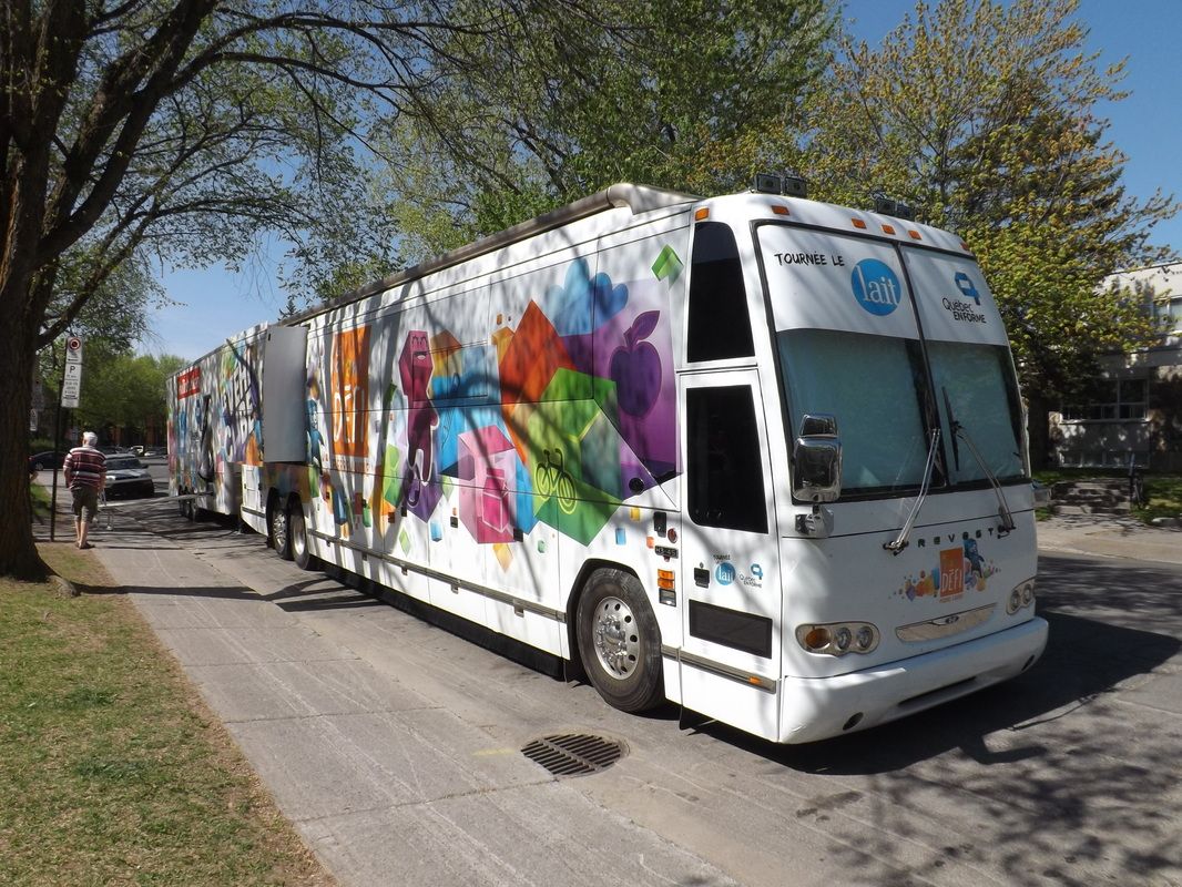 Le Véhicube du Grand défi Pierre-Lavoie devant l’école Saint-Benoît.
