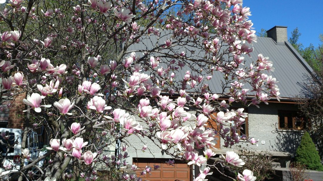 Sans doute offrirez-vous des fleurs à votre maman en ce beau dimanche de la Fête des mères que nous célébrons, ce 12 mai. Vous offrirez des fleurs, mais sûrement pas un aussi élégant et incomparable magnolia, croqué un peu à l’est, sur le boulevard Gouin… (2013-05-10)
