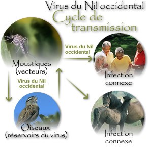 Le virus du Nil occidental (VNO) est un virus de la famille des flaviviridae et du genre Flavivirus. On le retrouve à la fois dans les régions tropicales et les zones tempérées. Il est contracté par une piqûre d’insecte, si ce dernier est porteur. Généralement, l’infection au virus passe pour un simple rhume. Bien que le VNO soit habituellement bénin, il n’en reste pas moins qu’en 2012, trois Québécois en sont morts alors que 132 ont été touchées au Québec, dont 35 à Montréal. (2013-07-19)