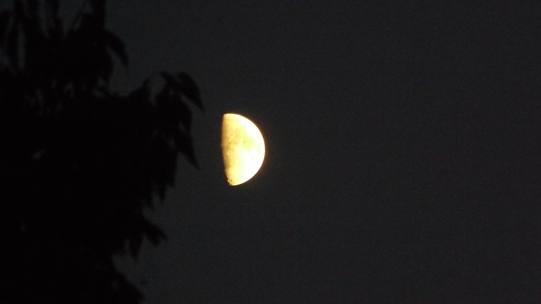 Timidement, l’astre lunaire amorce son apparition dans le ciel d’Ahuntsic: ce sera une demi-lune pour quelques nuits… (2013-07-19)