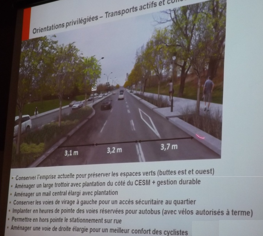 À la fin de la présentation, les résidants ont salué d’applaudissements les fonctionnaires ayant fait la présentation. On peut présumer qu’une grande partie de l’auditoire était heureux de ce qui est prévu. Une quinzaine de résidants ont pris la parole. Plusieurs craignent les débordements de circulation sur les rues locales, notamment sur la rue André-Grasset durant les travaux. Une résidente riveraine espère que ce réaménagement ainsi que le respect de la limite de vitesse à 50 km/h va réduire le bruit des voitures. Un résidant concerné par la traversée problématique au coin de Louvain s’est fait répondre qu’il devrait être plus facile de traverser avec la nouvelle configuration, car il y aura une voie de moins.