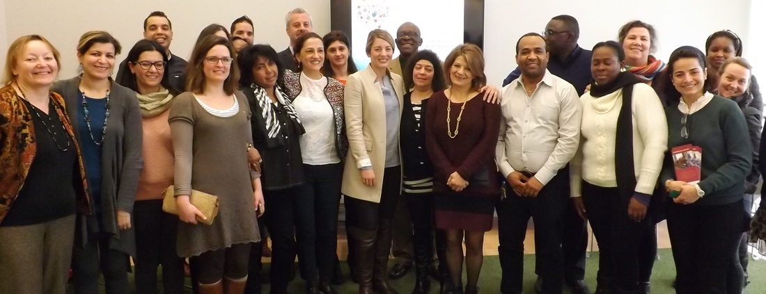 La députée d’Ahuntsic et ministre du Patrimoine canadien, Mélanie Joly, a rencontré des intervenants d’Ahuntsic-Cartierville venus participer une formation de deux jours sur l’intervention en milieu interculturel. La rencontre avait été organisée par le comité interculturel de Bordeaux-Cartierville les 29 et 30 mars dernier. Au cours de sa présentation, la ministre Joly a rappelé les démarches que le gouvernement fédéral effectue pour réduire les délais de parrainage pour les réfugiés, délais qui étaient auparavant de trois à quatre ans et qui se réduisent maintenant à seulement quelque mois. Elle a mentionné également l’obtention automatique de la résidence permanente pour les conjoints de résidants permanents qui sont déjà au pays afin de réduire la vulnérabilité des nouveaux arrivants. Elle a souligné les objectifs de parité homme/femme ainsi que de diversité que les 18 agences gouvernementales gérées par son ministère doivent atteindre. Elle a rappelé qu’Ahuntsic-Cartierville est l’une des trois circonscriptions fédérales au pays qui reçoit le plus de réfugiés. Finalement, elle a félicité tous les intervenants et les citoyens pour leur accueil auprès des réfugiés. L’activité était animée par le Service d’éducation et d’intégration interculturelle de Montréal en collaboration avec la Caisse Desjardins du Marché central. (Texte et photos : Philippe Rachiele)