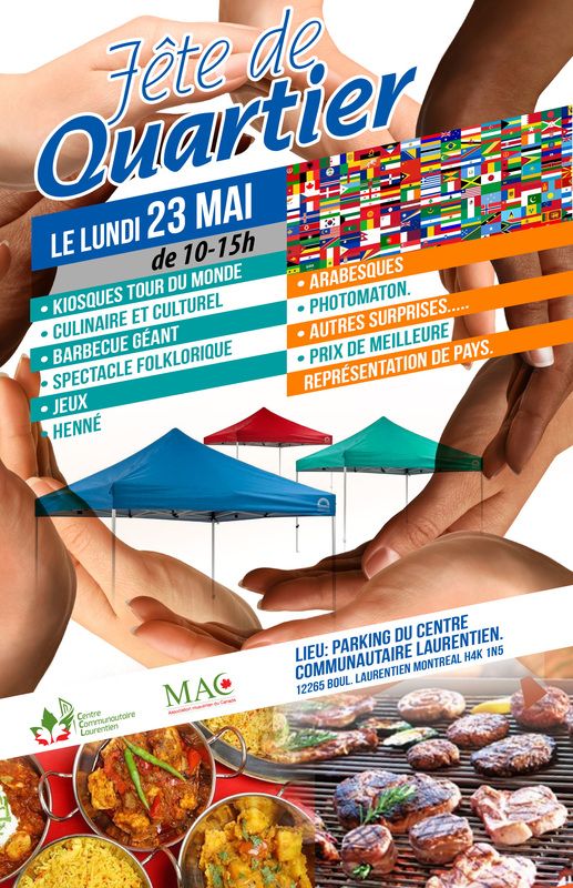 – Tour de Calèche entre 12h-15h (2$ /personne) – Kiosques tour du monde culinaire et culturel – Spectacle folklorique – Jeux – Henné – Arabesques – Photomaton. – Autres surprises…..