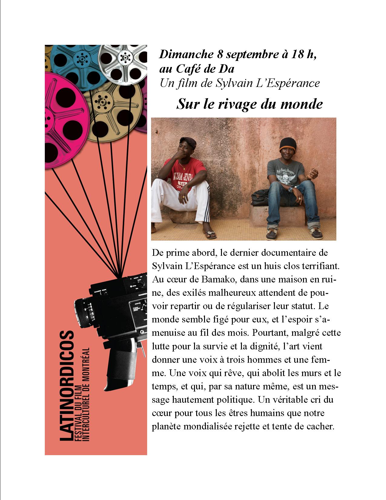 tournés à l’étranger par des cinéastes québécois. Deux films de fictions ou des documentaires différents chaque soir, à 18