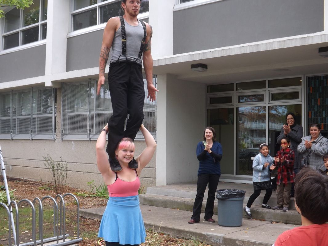 saltimbanques, ateliers du CANA (Carrefour d’aide aux nouveaux arrivants); Troc
