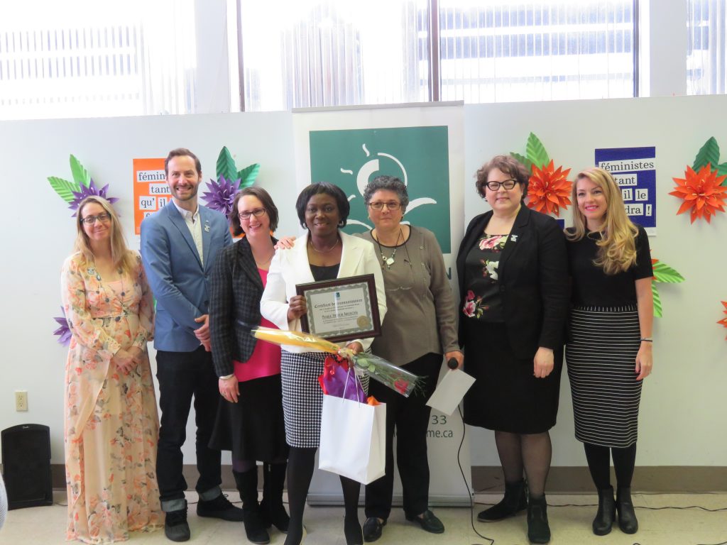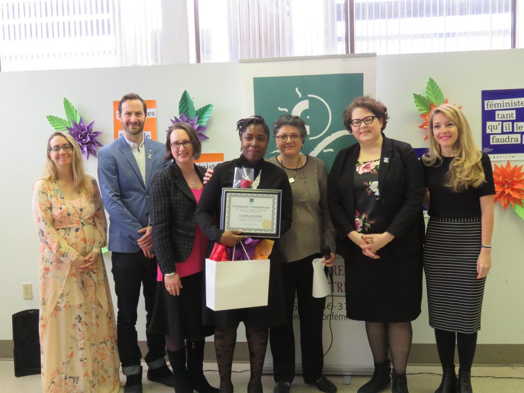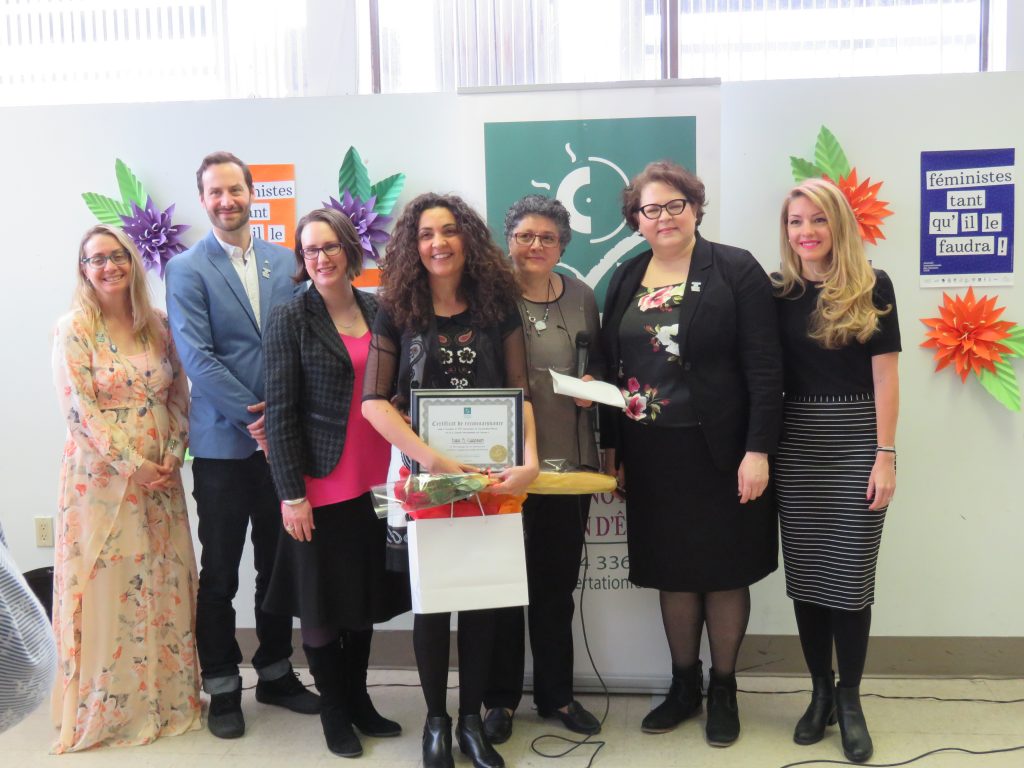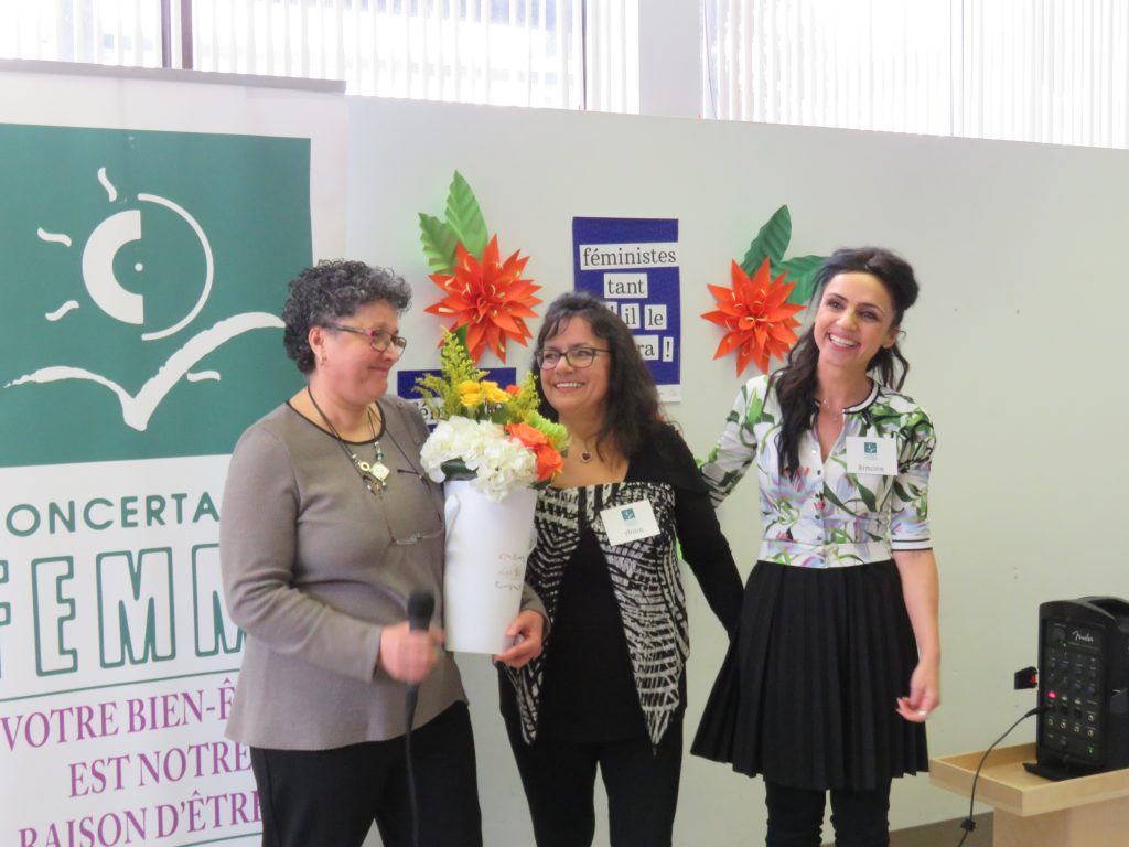 Le 9 mars 2018, Concertation Femme a souligné l’apport de nombreuses femmes ainsi que de quelques hommes qui ont contribué à faire un succès de l’organisme qui fête ses 35 ans. C’est Maysoun Faouri, la directrice de l’organisme qui a été l’animatrice de la cérémonie. Elle a tenu à souligner le bénévolat effectué par les nombreux bénévoles qui appuient Concertation Femme et qui sont partie prenante du succès de l’organisme.
