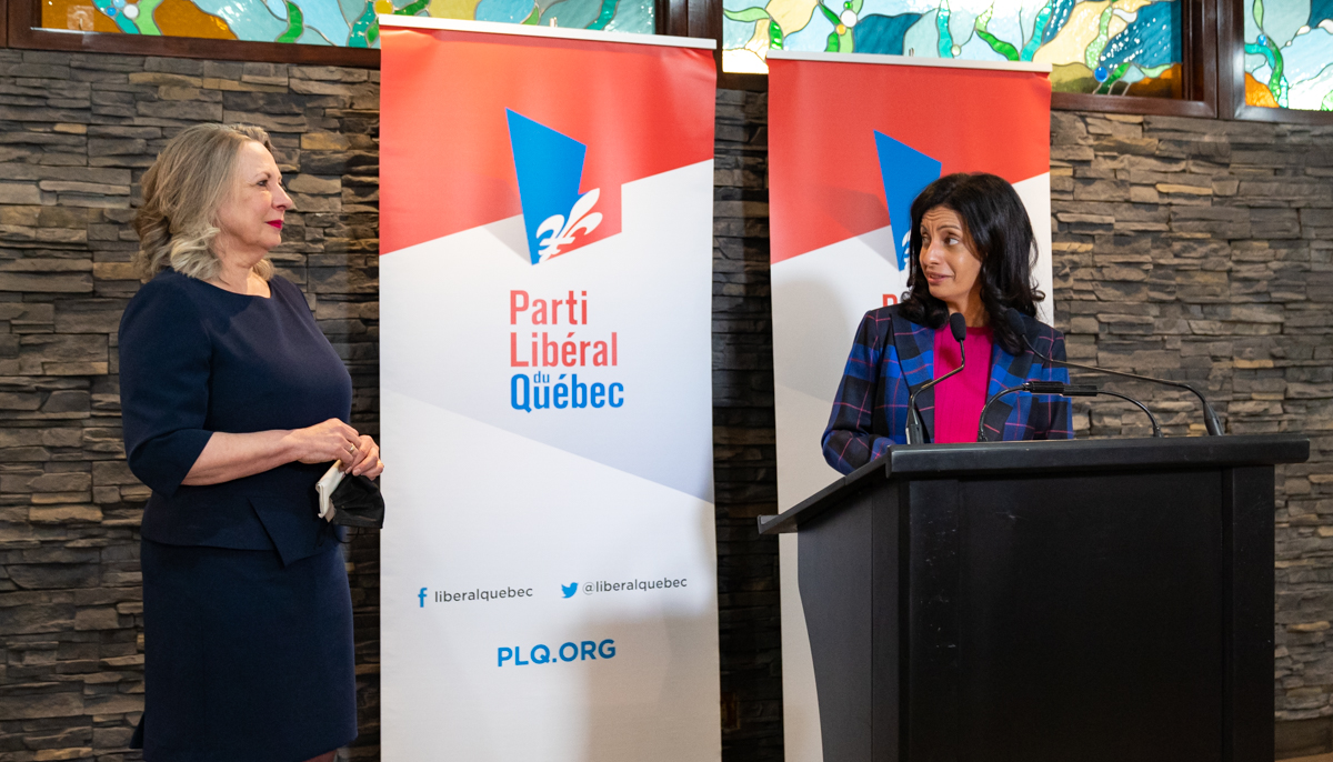 La cheffe du PLQ, Dominique Anglade, présente pour l’évènement, est revenue sur la carrière de sa députée sortante et a salué l’engagement de Christine St-Pierre.