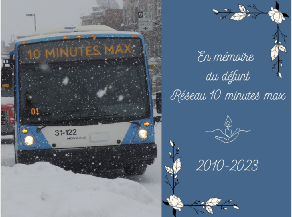 Fin des 31 lignes du Réseau 10 minutes max de la STM. (Photo : courtoisie site Internet de Trajectoire Québec)