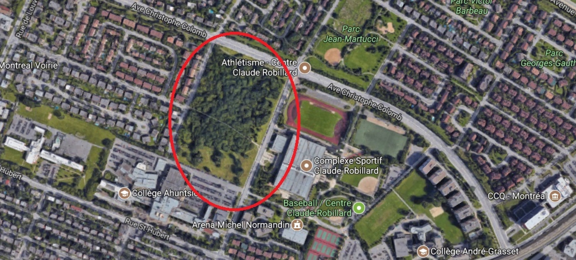 Le parc du Boisé St-Sulpice entouré en rouge (Source: Google Maps)