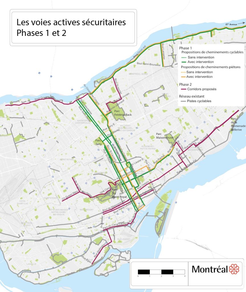 Carte des voies actives pour l’ensemble de Montréal (Source : Ville de Montréal)