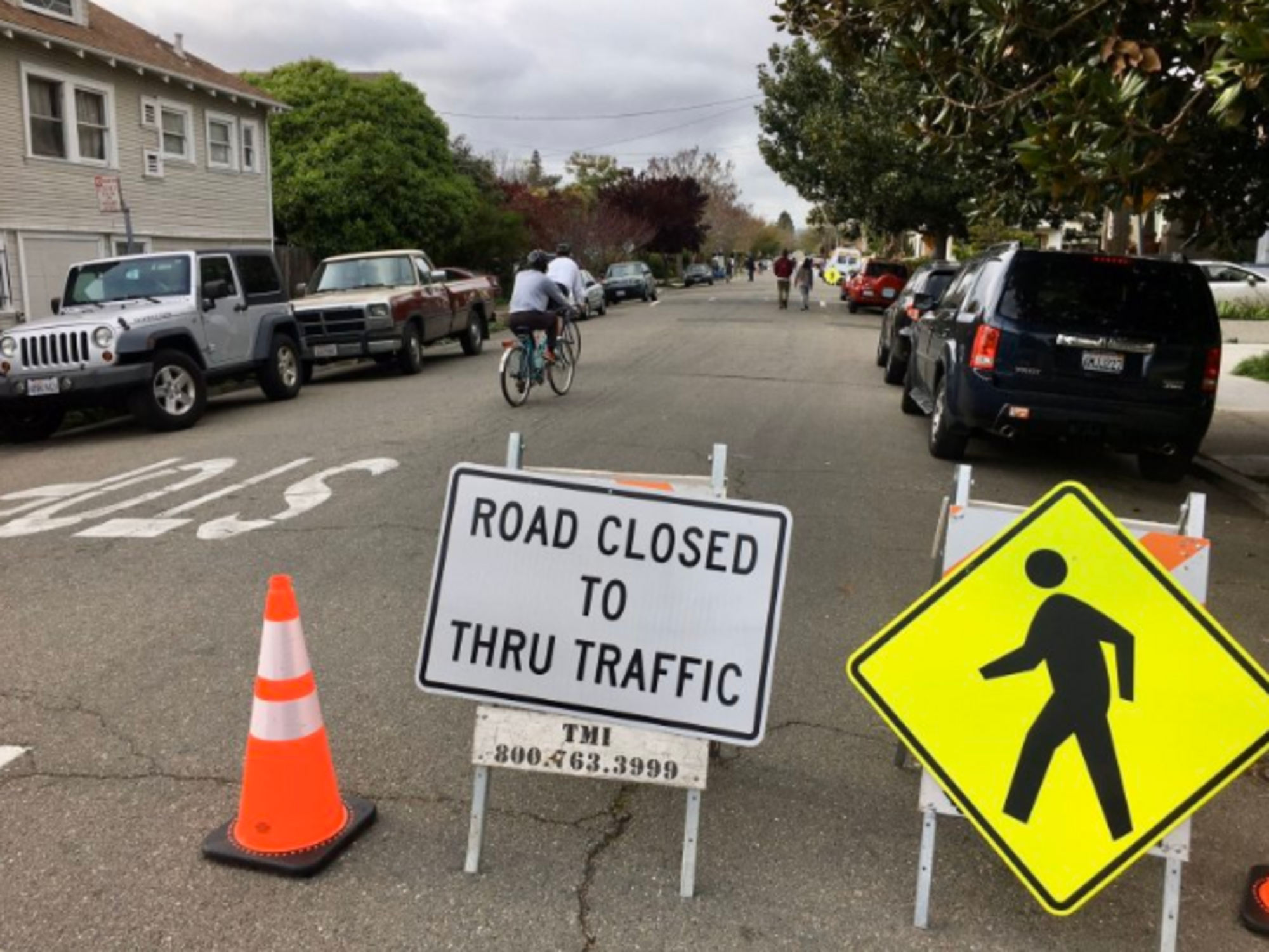 Exemple de rue familiale et active (slow street) implantée à Oakland aux États-Unis pendant la pandémie (Photo : Tiré du compte Twitter @prizrob)
