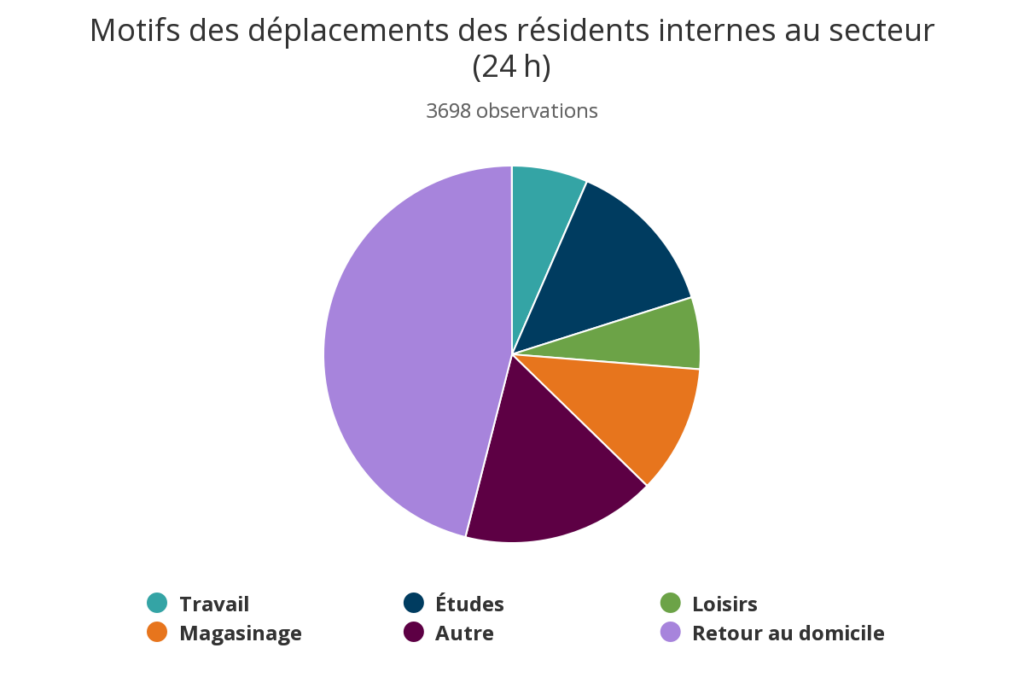 Graphique 4 – Le retour à la maison constitue la part essentielle des déplacements à l’intérieur même d’Ahuntsic-Cartierville. (Crédit : ARTM)