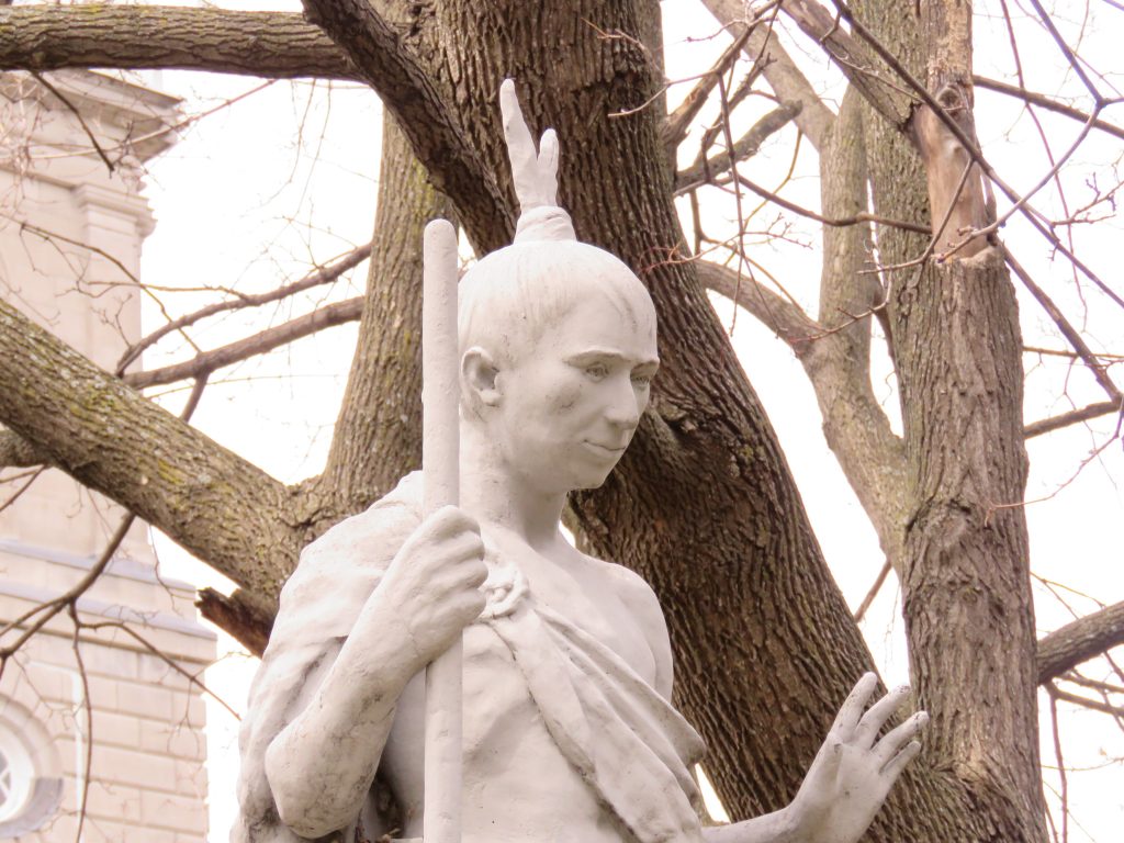 Statue d’Ahuntsic, devant l’église de la Visitation. (Photo: Philippe Rachiele, JDV)