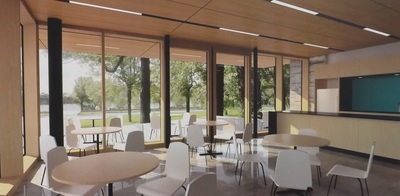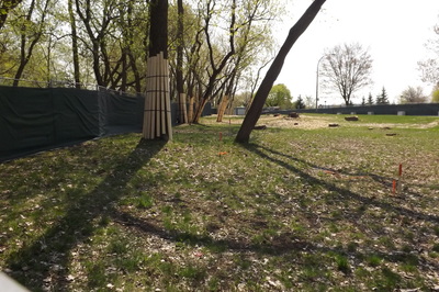 La première pelletée de terre a eu lieu le 12 mai en présence des élus de l’arrondissement, de quelques employés et invités. Le pavillon sera le premier édifice à consommation énergétique nette zéro de Montréal. Il sera alimenté par des panneaux solaires et construit de manière à réduire au minimum ses besoins énergétiques en surpassant les exigences du Code du bâtiment.