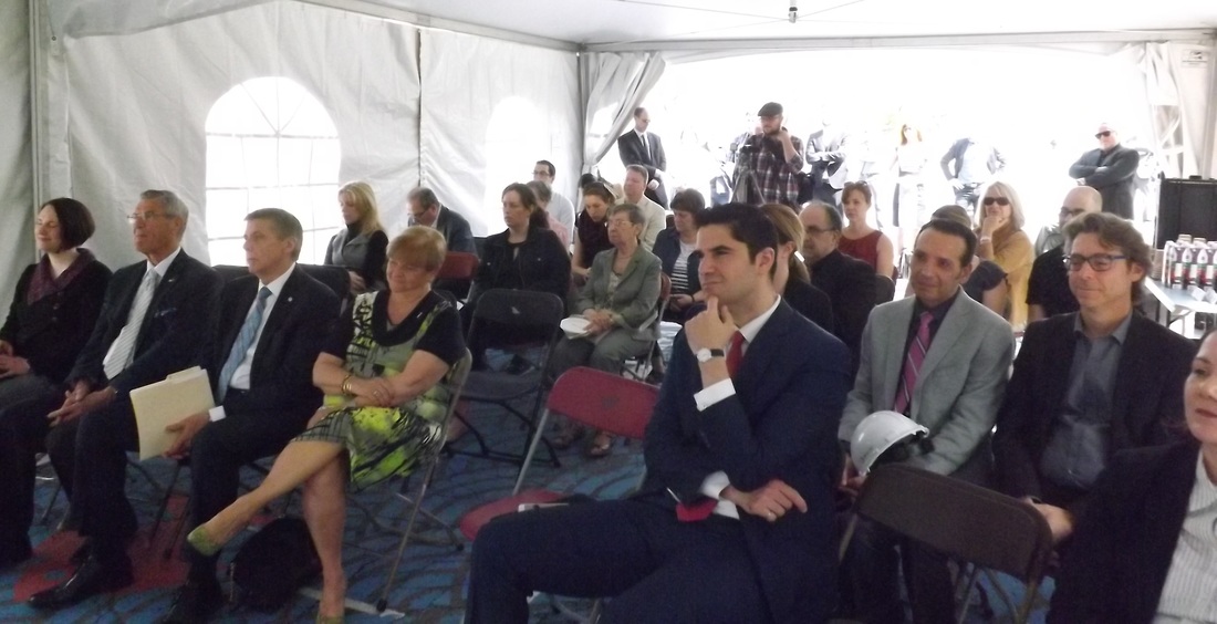 De son côté, représentant également le maire Denis Coderre, le président du comité exécutif et conseiller du district Saint-Sulpice, Pierre Desrochers a déclaré : « C’est avec grande fierté que nous lançons le projet de construction du Pavillon d’accueil du Parcours Gouin et le réaménagement du site, qui constitue un legs du 375e anniversaire de fondation de Montréal. Dans le cadre du Plan de l’eau, notre administration s’est engagée à redonner l’accès aux berges aux Montréalais. Nous réitérons cette priorité, alors que ce projet contribuera à la réappropriation des berges de la rivière des Prairies.