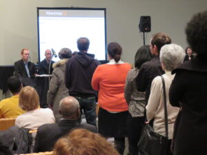 Or, Lionel Perez, membre du comité exécutif, responsable des infrastructures à la Ville de Montréal, était présent à la soirée et a précisé qu’il fallait plutôt rencontrer les élus à ce sujet.