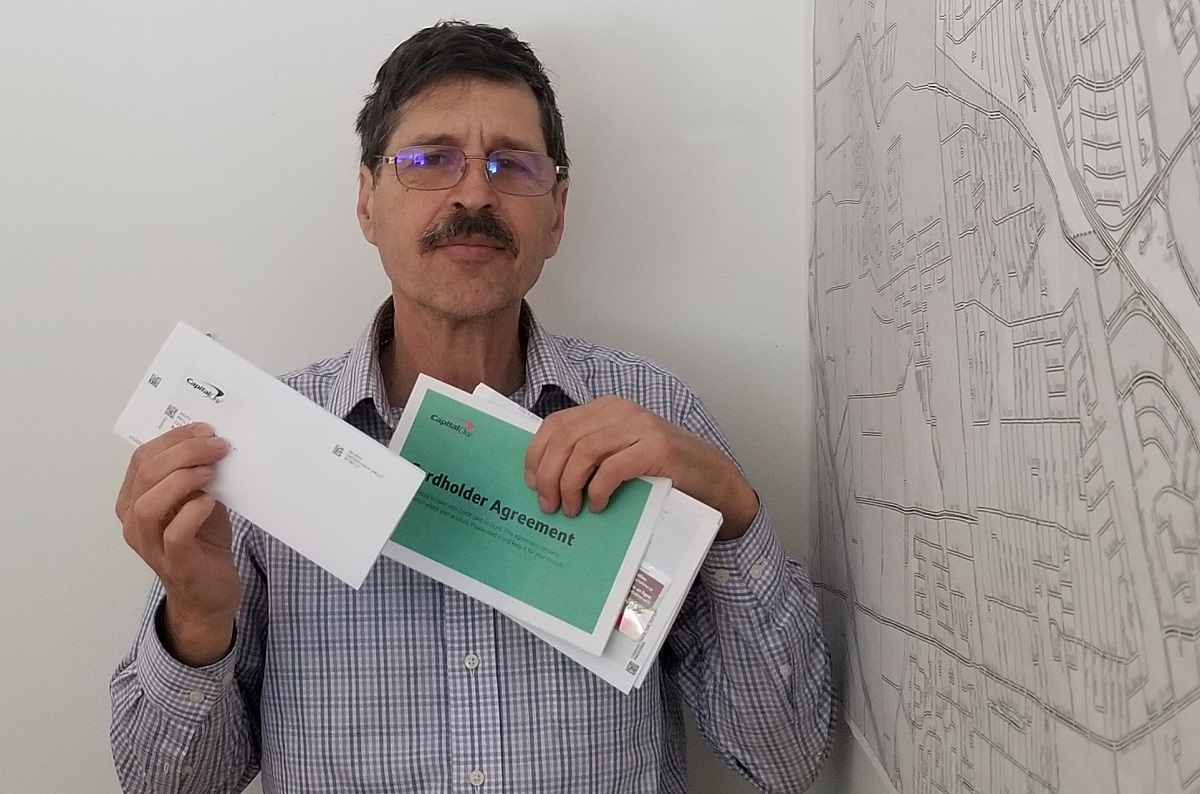 De retour à Ahuntsic le 15 janvier, il remarque que son courrier comporte deux enveloppes : une nouvelle carte de crédit Capital One et une autre enveloppe avec le numéro d’identification personnel (NIP) permettant de réaliser des transactions avec cette carte.