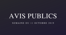 Avis publics – Semaine du 11 octobre 2019 Cette chronique est publiée gratuitement par archive.jdv.symbiodev.xyz au bénéfice de ses lecteurs… 11 octobre 2019