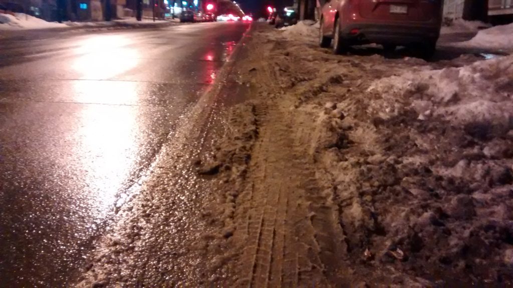 Mme Thuillier ne peut que constater que le problème est important sur les voies quatre saisons avec bandes cyclables dans lesquelles la neige et le gravier de la rue sont poussés par le matériel roulant vers l’espace des cyclistes et rendent l’usage du vélo difficile et dangereux.  «Il faut se donner les moyens de corriger la situation», ajoute-t-elle.