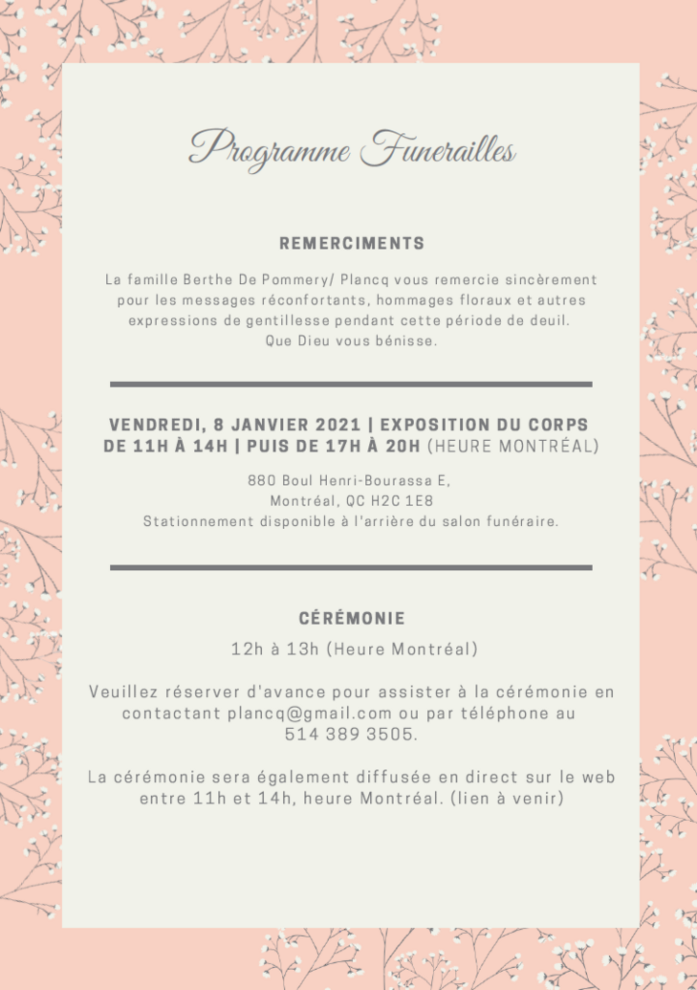 Au nom de tous les membres du département Économie – Administration du Collège de Bois-de-Boulogne, je vous offre mes sincères condoléances.