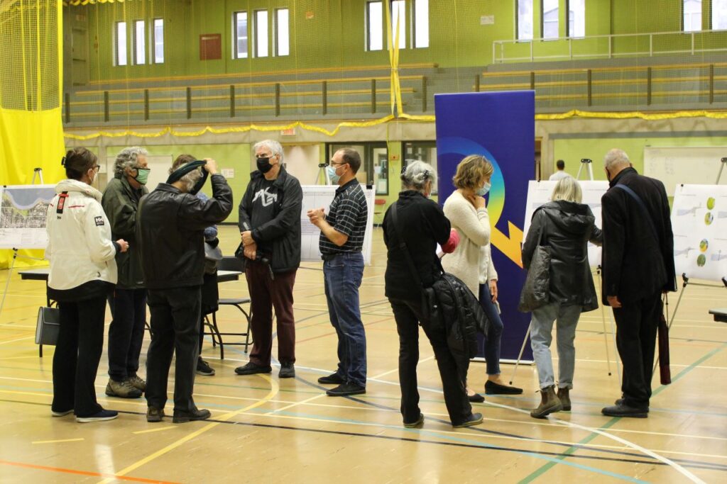 La séance « portes ouvertes » avait lieu dans le gymnase de l’école Sophie-Barat, et plusieurs dizaines de personnes étaient présentes en tout temps pour poser leurs questions aux représentants d’Hydro-Québec.