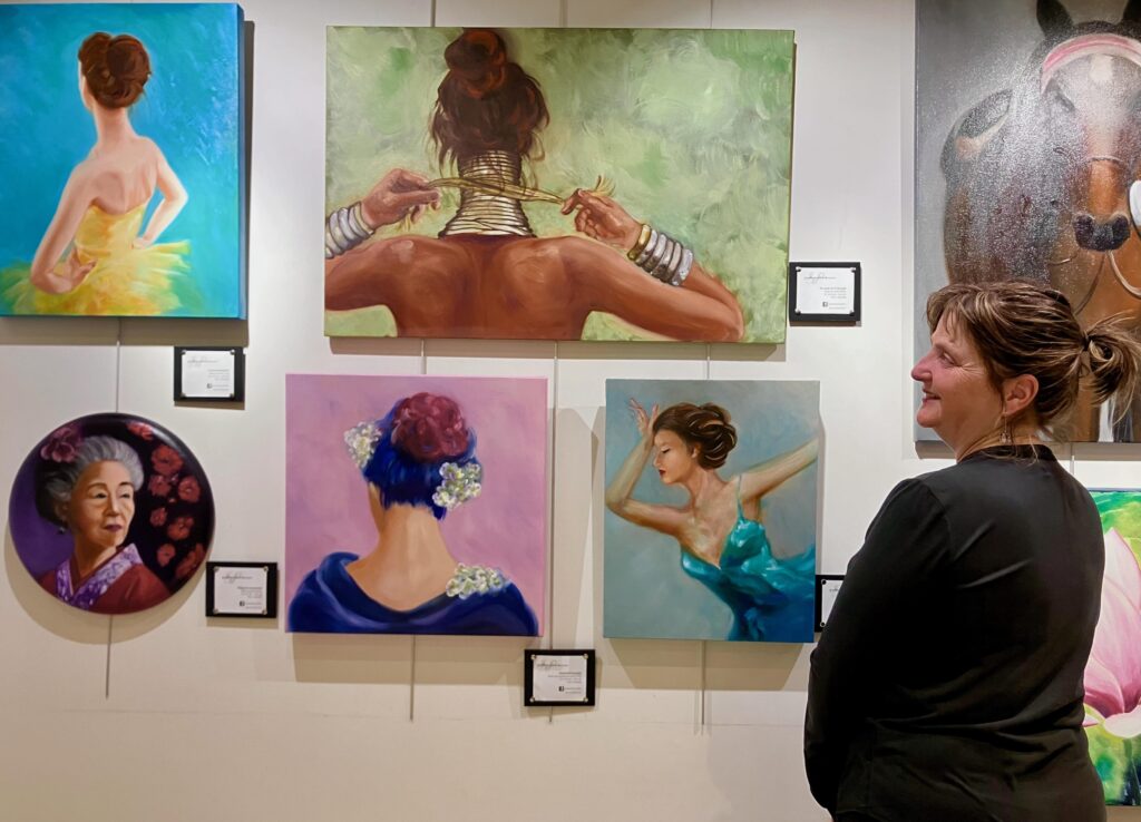 Plusieurs de ses «muses» sont peintes de dos. «Il y a une vie derrière elles, plus que si je les présentais de face. C’est la subtilité de l’imaginaire; on peut ainsi mieux essayer de deviner leur histoire.»