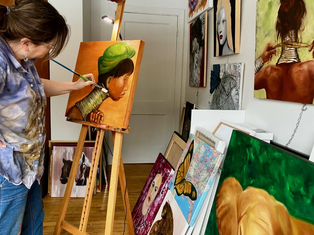 En cette Journée internationale du droit des femmes, le Journal des voisins (JDV) vous présente Josée-Marie Ouellet, une artiste qui aime peindre des personnages féminins, mais aussi bien d’autres sujets.