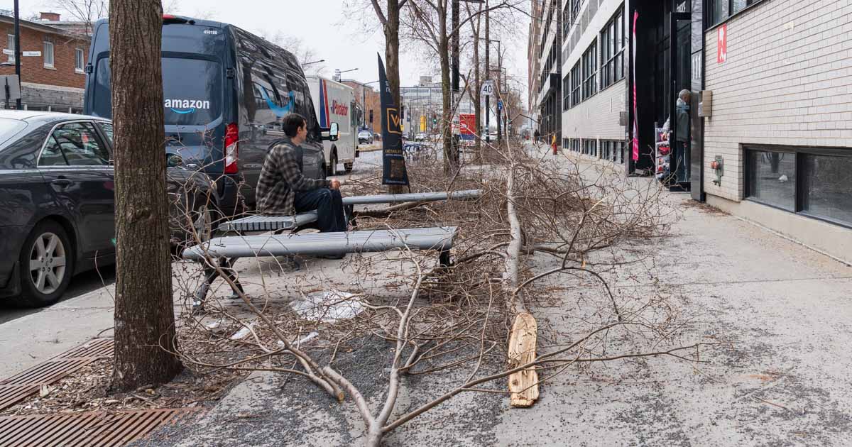 Rue Clark à la suite de la tempête de verglas, le 6 avril 2023. (Photo: Philippe Rachiele, JDV).