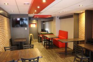 Chez Nikos Pizza, une grande majorité des commandes sont pour emporter. Or, habituellement, les clients qui viennent manger une pizza, une poutine ou un sous-marin sont contents de découvrir une salle à manger bien aménagée.