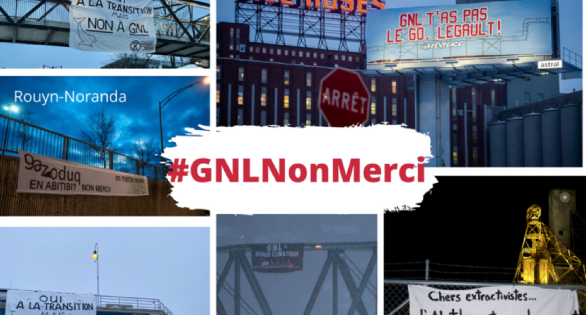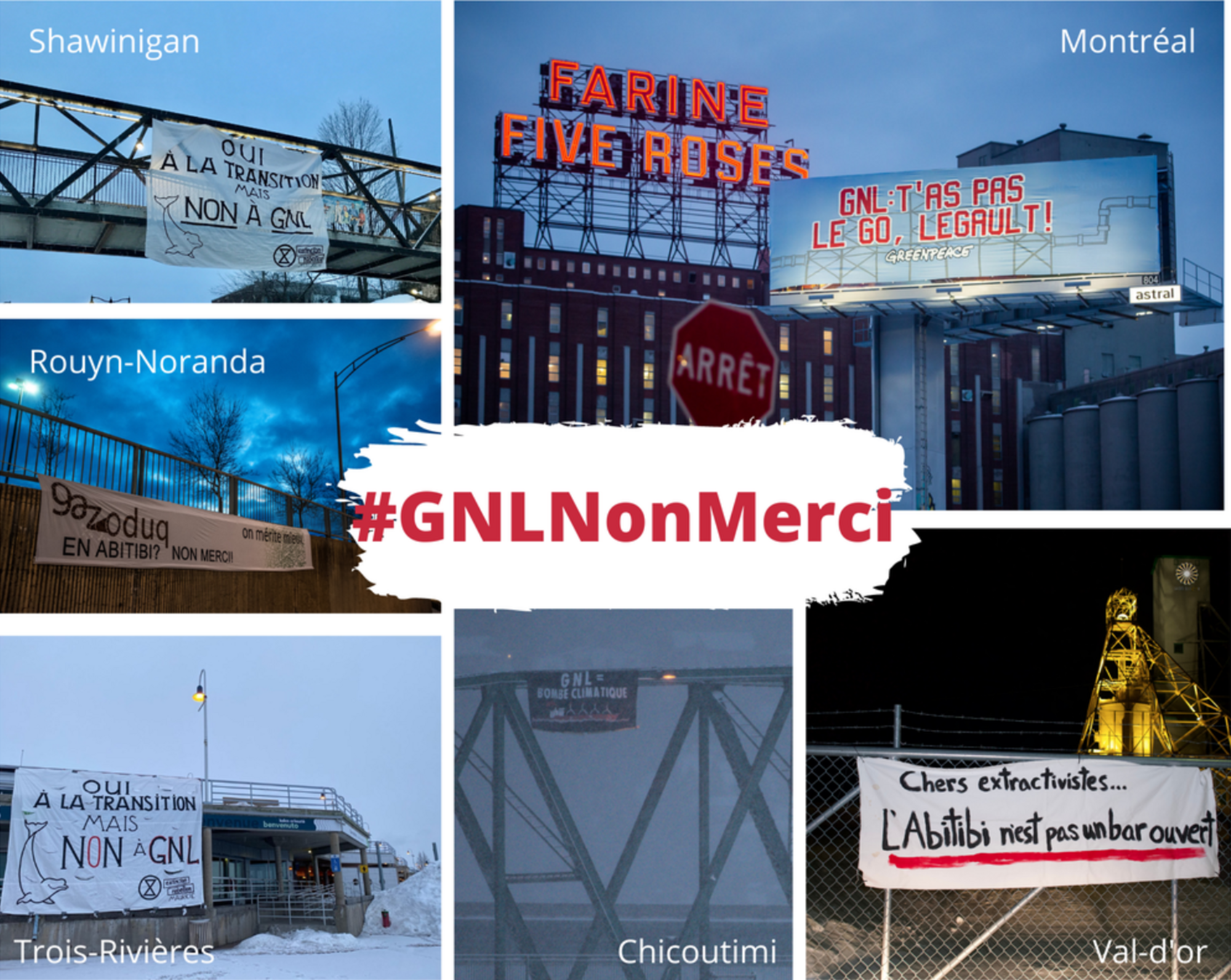 Montréal, le 14 mars 2021 – Près de trente équipes de militantes et militants de Québec solidaire ont déployé des bannières contre le projet GNL Québec ce matin. Les groupes ont affiché leur message dans 14 villes du Québec, dont Montréal, Québec, Rouyn-Noranda, Chicoutimi et Amos.