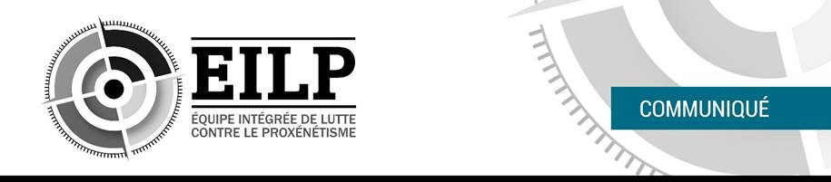 L’Équipe intégrée de lutte contre le proxénétisme (EILP) est une structure d’enquête unifiée au sein de laquelle les organisations policières travaillent de façon concertée afin de lutter efficacement contre les réseaux de proxénétisme et de traite de personnes à des fins d’exploitation sexuelle opérant à l’échelle interrégionale, interprovinciale et internationale. Cette équipe regroupe des enquêteurs de la Sûreté du Québec, de la Gendarmerie royale du Canada et des Services de police de Montréal, Laval, Longueuil, Québec et Gatineau.