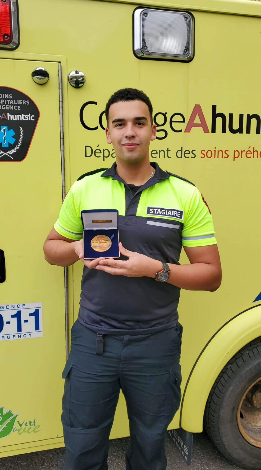 Montréal, le 2 décembre 2020 – Raphaël Michel, étudiant en Soins préhospitaliers d’urgence (SPU) au Collège Ahuntsic, a reçu la médaille de l’Assemblée nationale du Québec par le député de Viau, monsieur Frantz Benjamin, pour sa contribution exceptionnelle au programme Je contribue.