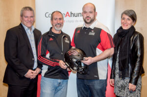 De gauche à droite : Yvon Pépin, directeur des services financiers, Christian Moisan, conseiller à la vie étudiante, Adamo Iadeluca et Nathalie Vallée, directrice générale du Collège Ahuntsic. (crédit photo : Francine duquette ©)