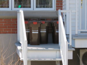 Des bacs bruns qui ont été distribués dans le district du Sault au Récollet (Photo : jdv – Philippe Rachiele)
