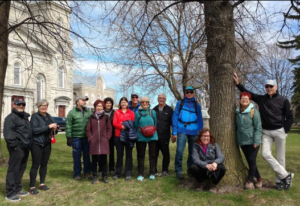 Avec l’arrivée du printemps, le club délaisse les trottoirs asphaltés du Parcours Gouin pour fouler la terre ferme des sentiers du Parc nature de l’Île-de-la-Visitation. Ainsi, le lundi, 24 avril dernier, c’est avec beaucoup d’enthousiasme que 24 marcheuses et marcheurs ont pris plaisir à arpenter les sentiers, au rythme de 6 km/heure : un entraînement vigoureux, excellent pour la santé cardiovasculaire. Habituellement, 2 parcours sont proposés, soit 6 ou 9 km; les nouveaux préfèrent souvent le trajet le plus court. Quant aux autres, ils acceptent à l’unanimité la proposition de Sylvain Allaire, chef de file, soit marcher 10 km plutôt que 9, lundi prochain. Certains d’entre eux participent aussi à la marche de 6 à 8 km, le mercredi soir à 19 h. Une façon comme une autre de saluer l’arrivée du printemps, en bonne compagnie. Crédit photo : Odette Viau, 24 septembre 2017, Stationnement de l’église-de-la-Visitation (Source : Club de marche dynamique)