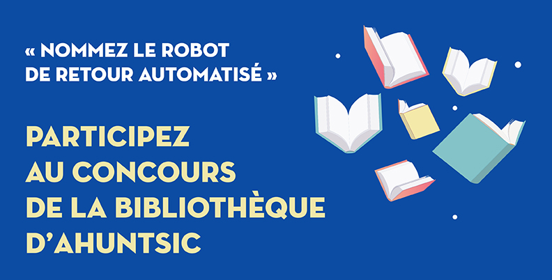 Avez-vous participé au concours « Nommez le robot de retour automatisé » de la bibliothèque d’Ahuntsic? Vous avez jusqu’au samedi 29 février pour le faire. Il suffit de remplir le coupon de participation et d’y inscrire votre suggestion.