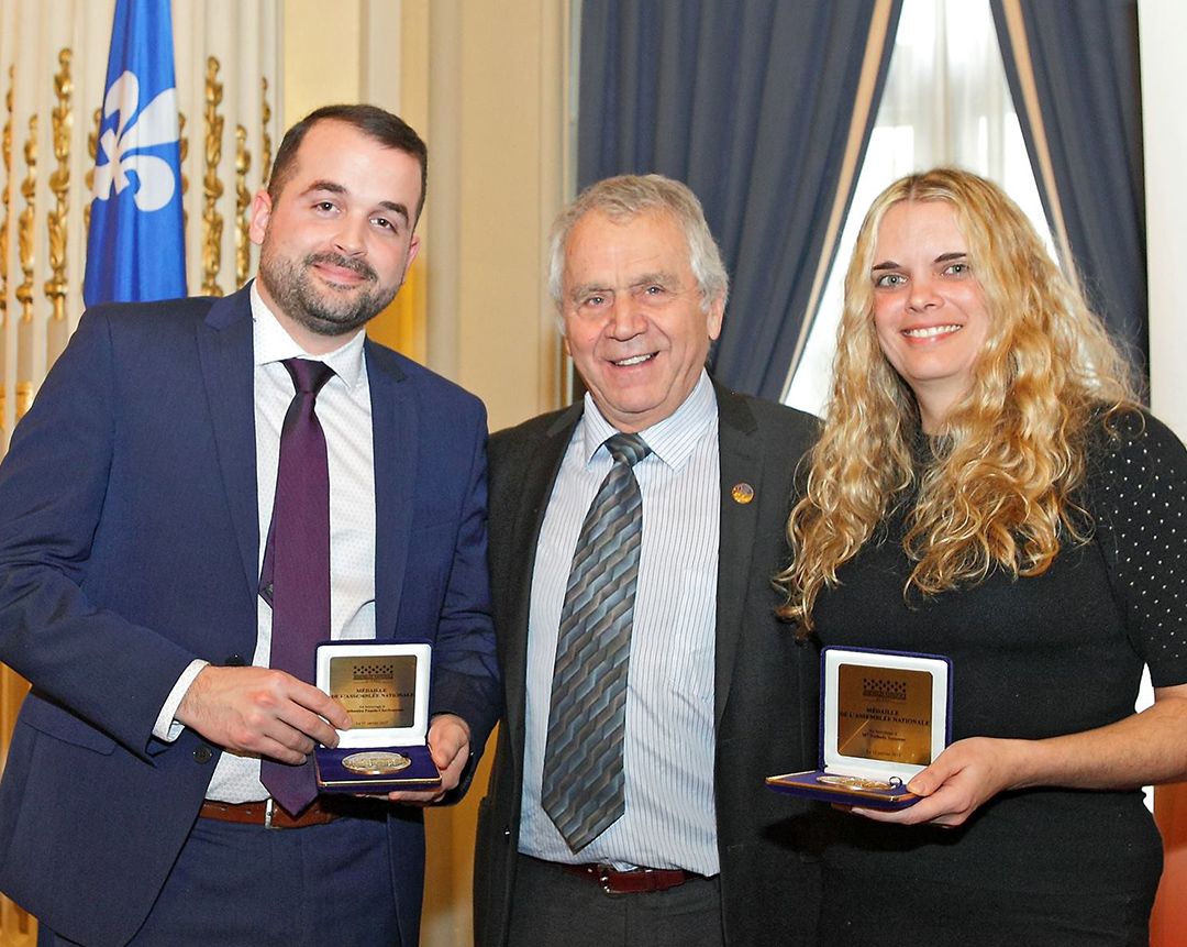 Dans le contexte du 25e anniversaire du Forum étudiant, une simulation parlementaire qui initie des étudiants aux rouages de la démocratie, le Collège Ahuntsic et Sébastien Paquin-Charbonneau, enseignant en sciences politiques, ont été honorés par l’Assemblée nationale, le 12 janvier 2017. La cérémonie s’est déroulée en présence notamment de M. François Gendron, troisième vice-président de l’Assemblée nationale, de Nathalie Vallée, directrice générale du Collège, de Jean Karam, ancien enseignant en sciences politiques et l’un des fondateurs du Forum, de Lilian Wolfelsberger, enseignant en sciences politiques, de trois diplômés du Collège Ahuntsic venus encadrer bénévolement, ainsi que des étudiants participants du Collège Ahuntsic. M. Paquin-Charbonneau qui, parallèlement à ses fonctions d’enseignant au Collège, a récemment terminé un baccalauréat en droit et la formation professionnelle de l’École du barreau en vue de devenir avocat, a reçu la Médaille de l’Assemblée nationale pour souligner sa contribution exceptionnelle au bon fonctionnement du Forum étudiant depuis maintenant 16 ans. Habitué du Forum, il y a d’abord participé à titre d’étudiant, puis d’encadreur durant ses études universitaires avant de poursuivre depuis 2007, une fois devenu enseignant, à titre de membre du comité pédagogique responsable de l’organisation. Notons aussi qu’il organise, encadre et coordonne les délégations d’étudiants de notre collège depuis plus de 10 ans. (Source : Collège Ahuntsic)