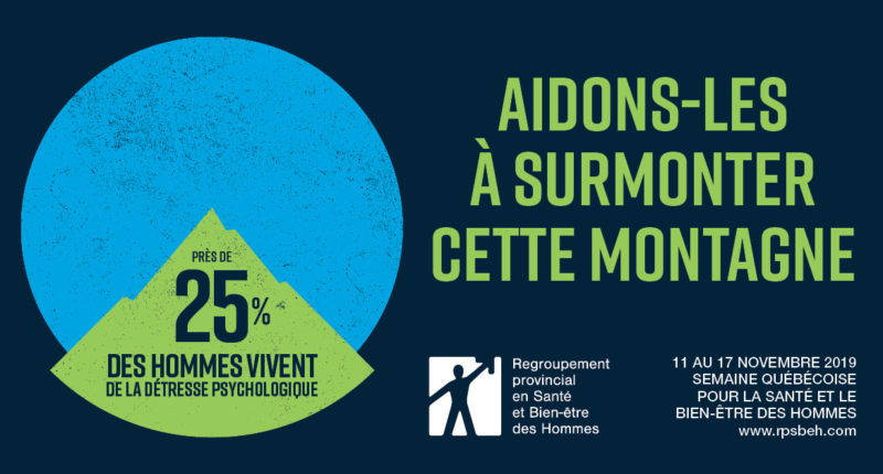 Québec, 11 novembre 2019 – Le sondage SOM réalisé à l’automne 2018 à la demande du Regroupement provincial en santé et bien-être des hommes – RPSBEH et du Pôle d’expertise et de recherche en santé et bien-être des hommes auprès de 2 000 Québécois majeurs révèle que près du quart (22 %) des hommes interrogés seraient en situation de détresse psychologique probable. Mais ce qui est le plus inquiétant c’est que seulement 29% d’entre eux auraient demandé l’aide de ressources psychosociales au cours de la dernière année.