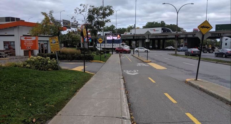 Les travaux, qui devraient débuter cet été, consistent à implanter un marquage spécial de couleur verte et à surélever le tronçon de la piste cyclable à l’entrée du stationnement du restaurant, ce qui sécurisera les déplacements en vélo.