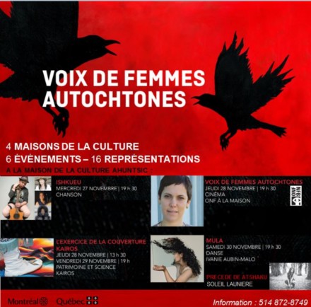 Jusqu’au 30 novembre, dans quatre maisons de la culture (Ahuntsic-Cartierville, Janine Sutto, Plateau-Mont-Royal et Rosemont–La Petite-Patrie), l’édition 2019 de la série Voix de femmes est consacrée aux artistes des Premières Nations.