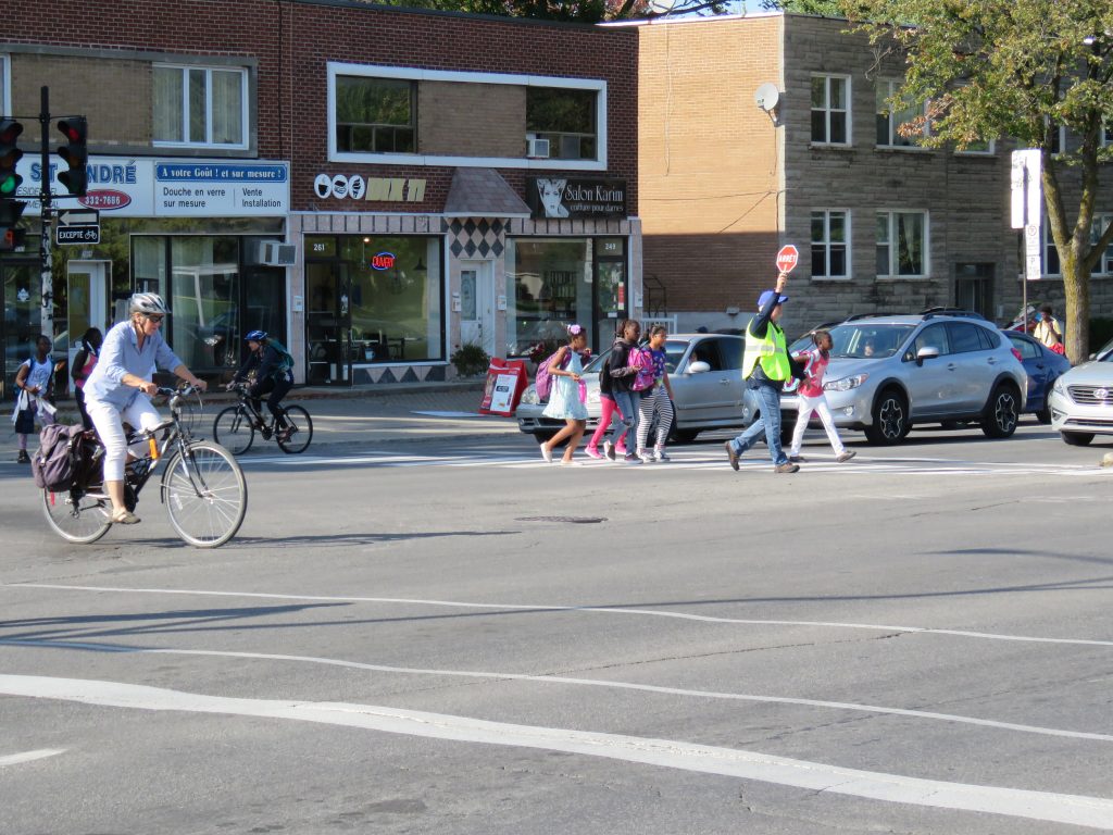 Traversée du boulevard Henri-Bourassa, angle Tolhurst, avec brigadier (Photo: archives JDV)