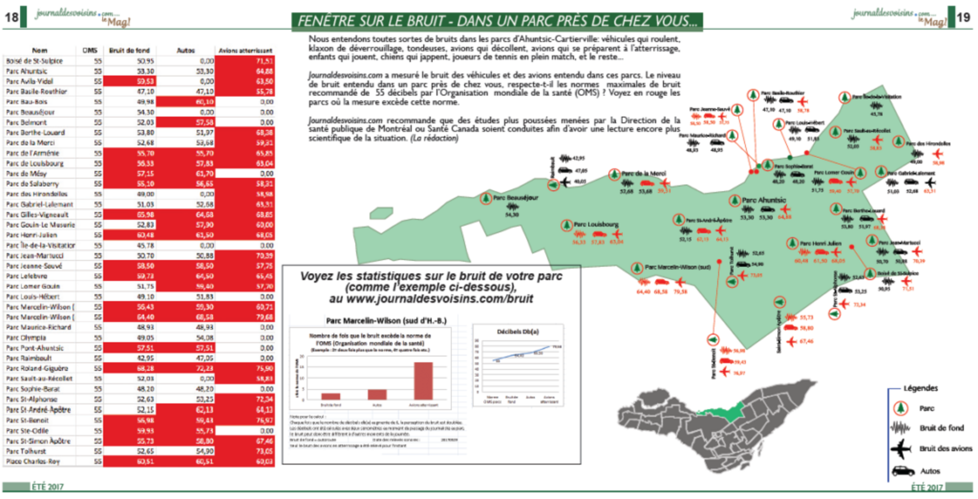 Le bruit dans les parcs d’Ahuntsic-Cartierville par ordre alphabétique