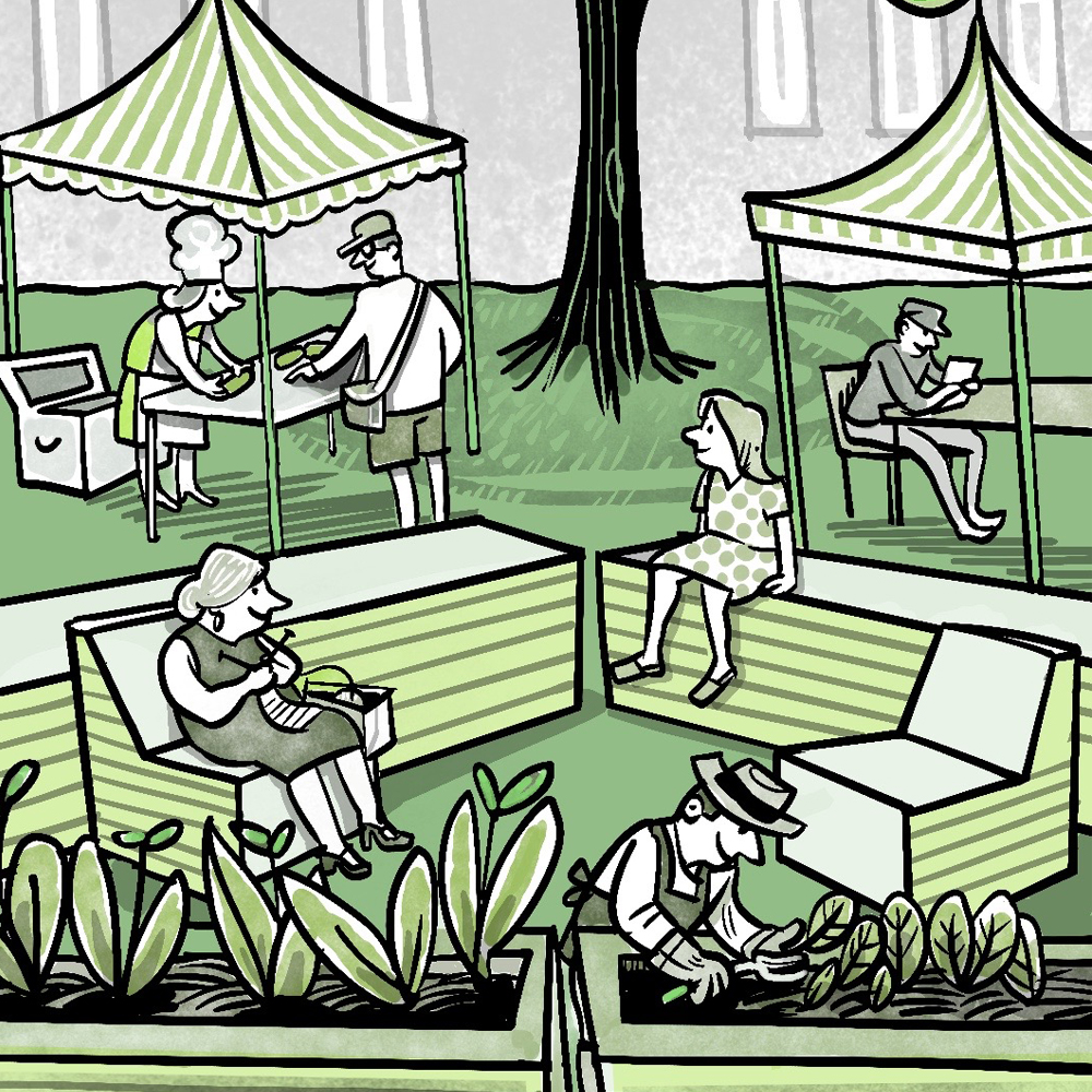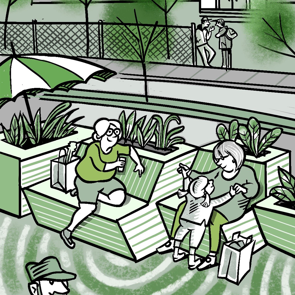 On trouve ainsi un espace communautaire pilote sur la rue Millen entre les rues Sauvé et Sauriol, des arbres fruitiers au parc Henri-Julien dont les fruits pourront être cueillis par les citoyens, des triporteurs électriques au bord de l’eau, un espace de détente public au District Central, de nouveaux placottoirs sur des places de stationnement de la Promenade Fleury, plus d’animation à Station Youville, des cafés-rencontres pour briser l’isolement, un parcours de bancs dans des lieux d’intérêt d’Ahuntsic-Cartierville, une Agora au parc Tolhurst.