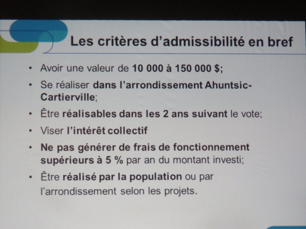 Les 99 projets soumis par les citoyens –et qui avaient fait l’objet d’un premier tri par l’arrondissement– étaient affichés tout autour de la Maison de la culture.