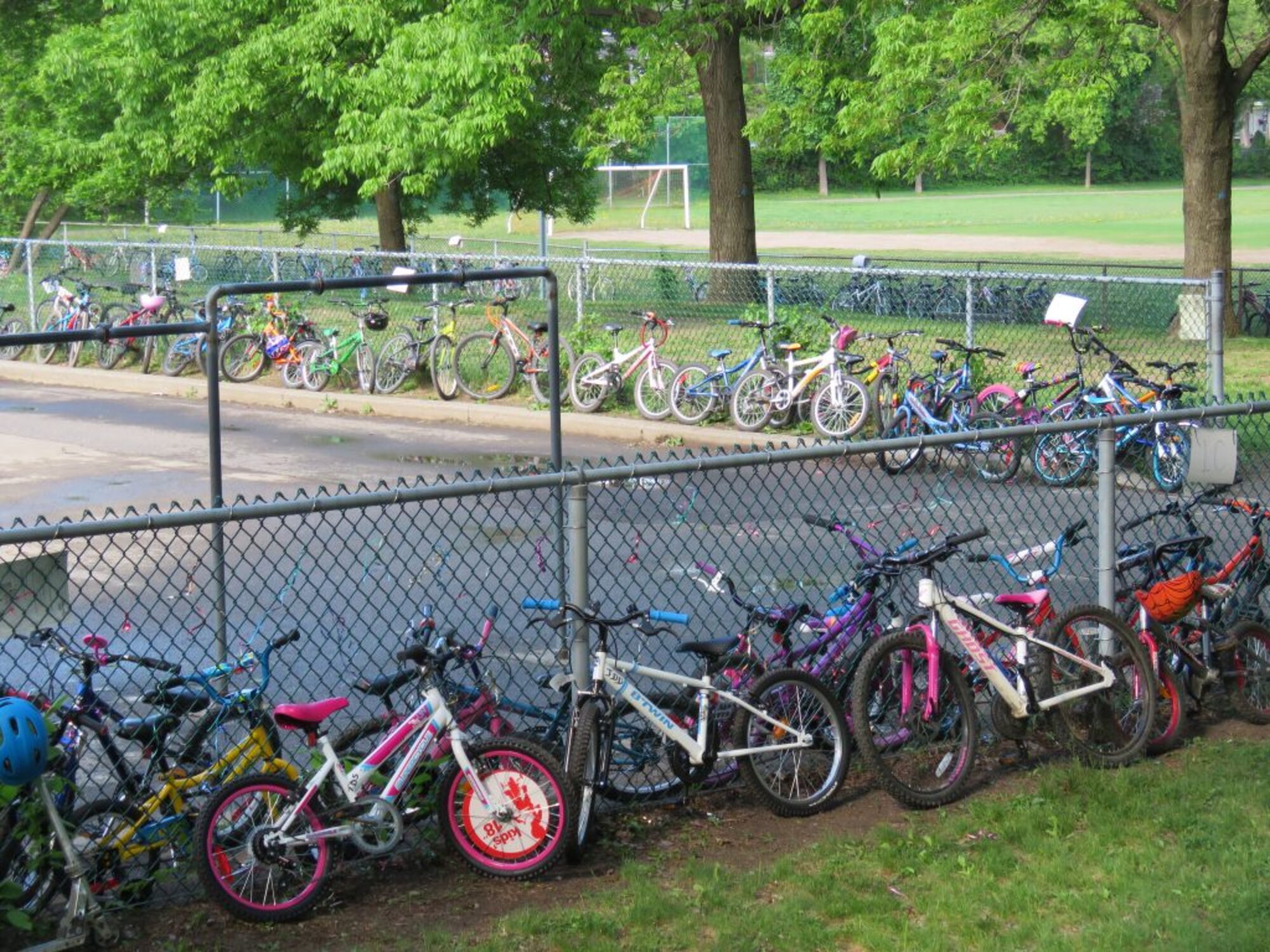 Plus d’une centaine de bicyclettes sont appuyées contre les nombreuses clôtures de l’école Saint-André-Apôtre en ce mardi 29 mai, une situation assez surprenante pour une école primaire comptant très peu d’élèves adeptes du transport sur deux roues.