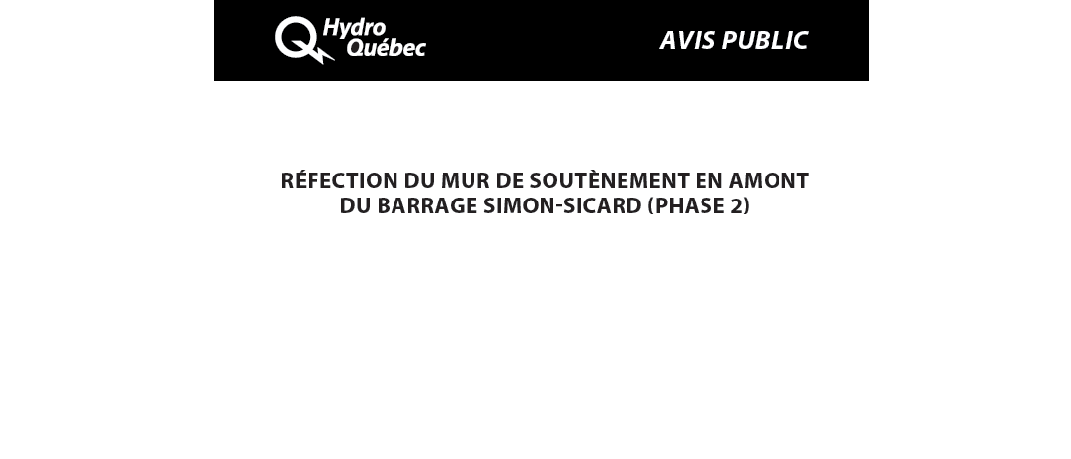 Avis public d’Hydro-Québec (Même avis que ci-dessus mais en texte avec liens Web) _______ Réfection… 17 juillet 2019