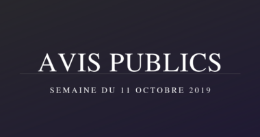 Avis publics – Semaine du 11 octobre 2019 Cette chronique est publiée gratuitement par archive.jdv.symbiodev.xyz au bénéfice de ses lecteurs… 11 octobre 2019