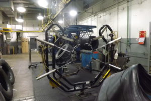 Autobus à l’atelier de peinture dans la section carrosserie (Photo : jdv – P. Rachiele)