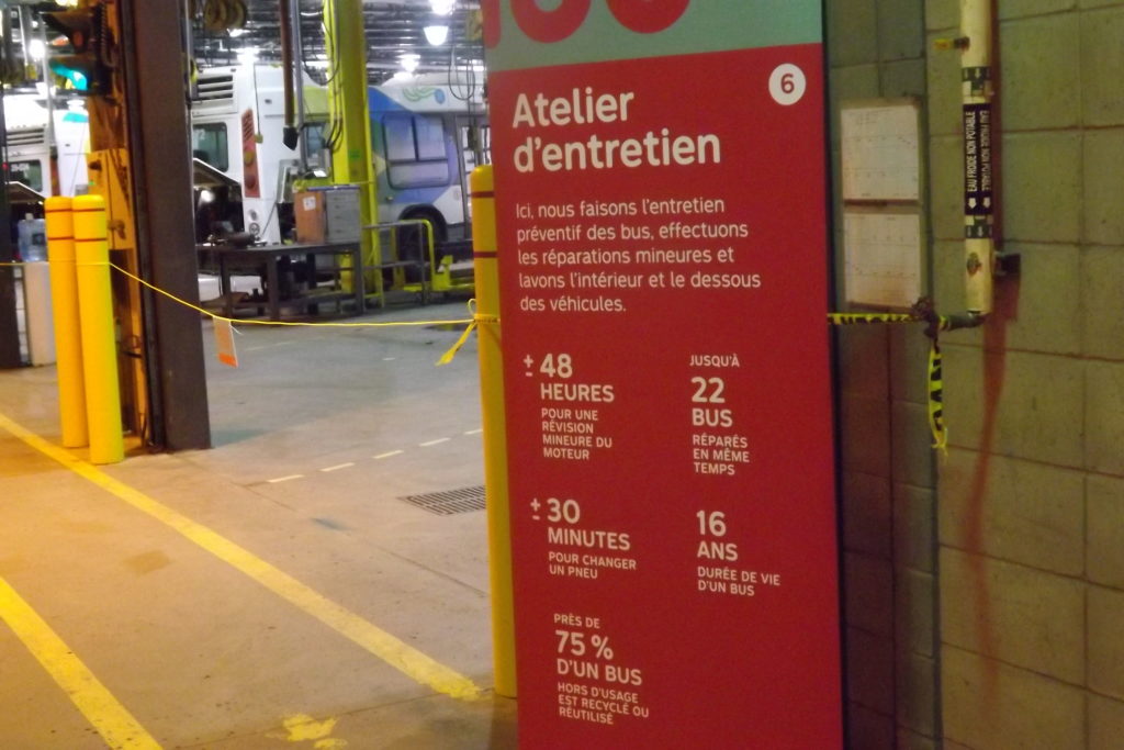 Les citoyens curieux ont pu apprendre une foule de renseignements surprenants à l’occasion de leur visite, notamment la durée de vie moyenne d’un pneu d’autobus qui n’est que de huit semaines. Après cette période, un pneu est envoyé au «réchappage» et ressemelé avant d’être retourné sur la route, mais cette fois comme pneu arrière.  En effets, seuls des pneus neufs seraient utilisés à l’avant des autobus.